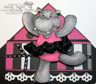 Now who doesn't think a ballerina Hippo is just the cutest thing ever? Doesn't this just make you smile?! It sure did me. The stamps over at Doodle Pantry always do that to me. This adorable dancing hippo is from a stamp set called "Hippo-Ray" it was just released this month. I made her into a corner bookmark for the Crafty Catz challenge. The color combo came from Stamptacular Sunday.